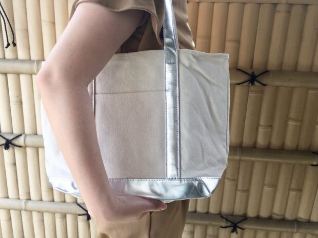 筆者も発売日に手に入れてみました。生地も厚めで、付録とは思えない高クオリティ。持ち手と底の部分のシルバーがアクセントになっていますが、全体的なシンプルなデザインなので、どんなコーディネートにも合いそうです。