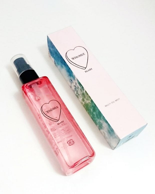 イガリシノブさんがプロデュースしたブランドWHOMEE(フーミー)からもオイルインミストが出ていますよ! 「マルチオイルミスト」(120ml・1,800円・税別)は、顔や身体、髪など全身に使えて、ひと吹きするだけで水っぽいツヤ肌を演出できます。ベタつきがなく、しっかり保湿してくれるみたい。ピンクのボトルが見た目にもかわいく、持ち歩きたくなりますね!