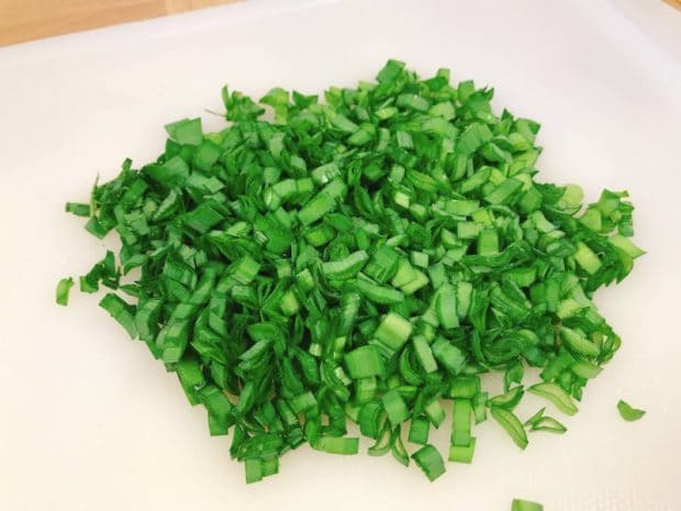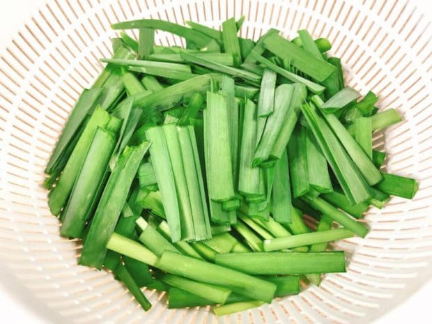 1) ニラ1/2束を細かく刻みます。