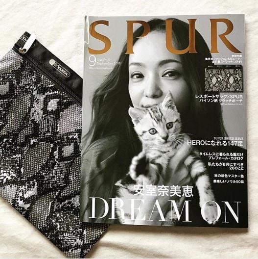 雑誌「SPUR」9月号の付録は、大人なパイソン柄のクラッチポーチ。モノトーンのシックなポーチは季節を問わず使えそう。雑誌の表紙とも、マッチしていますね。