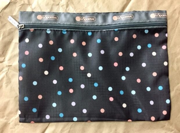 雑誌「MORE」の付録ポーチは、マルチドット柄。気になっていた筆者も早速ゲットしてみましたが、タテ21㎝×ヨコ28.5㎝とビッグサイズで、いろんな用途に使えそうです。