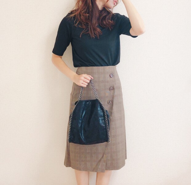 ひと足早く、秋のレディな着こなしを満喫したい方は「ラップミディスカート(チェック)WT」を取り入れてみて。レトロなムードを感じるデザインのスカートは、上品な印象でオンオフ問わず活躍できるアイテム。お値段は1,990円(税別)です。シンプルなブラウスやサマーニットを合わせてスカートを引き立ててあげると、洗練された着こなしを演出できます。