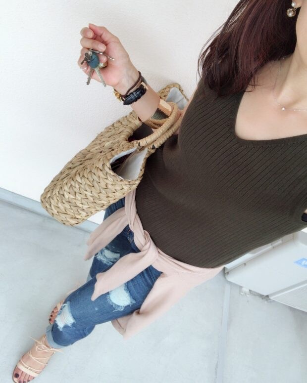 オーバーサイズで自然にこなれ感がでるセーターは、着回し自在で長く使えそう。アースカラーでまとめれば統一感が出ますね。