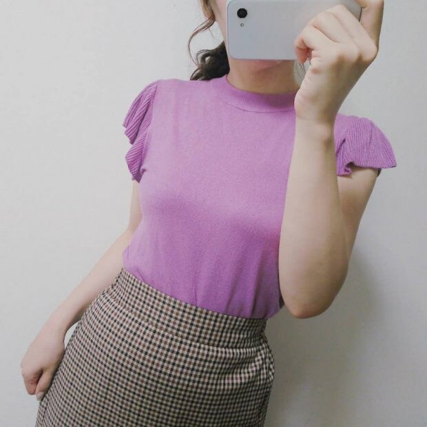 1枚で華やかさが演出できるフリルスリーブセーターは、首回りをきれいに見せてくれるミニハイネックのデザイン。チェック柄と合わせれば旬のエッセンスをばっちり盛り込めます。