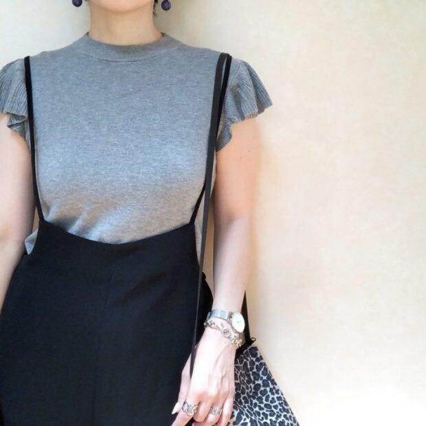 ワイドパンツと合わせれば女性らしいシルエットに。オンでもオフでも活躍してくれそうなこなれたスタイルに。オフホワイト、グレー、ピンク、ネイビーの4色で価格は990円(税別)です。