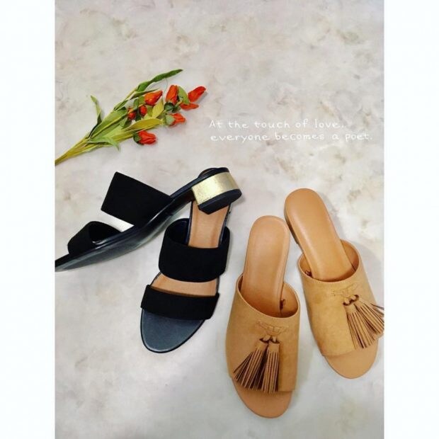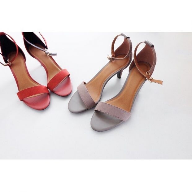 写真の左側のダブルベルトミュールは、2本の太めベルトがポイントのデザインで秋からも活躍してくれること間違いなし! 低めのヒールで歩きやすいのも◎。ブラック、ピンク、ベージュ、ネイビーの4色で価格は1,490円(税別)です。