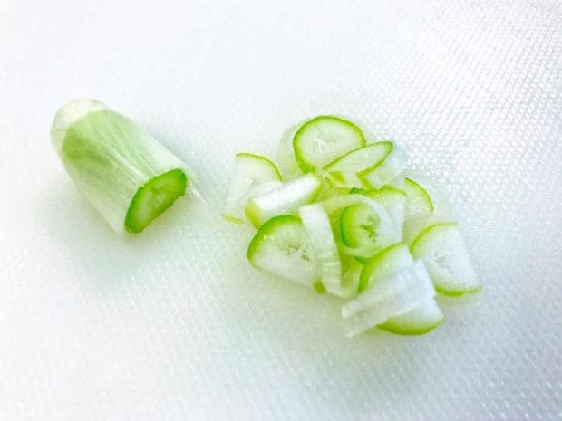 麺の薬味によく使われるのはみじん切り。いくつかみじん切りの方法はありますが、包丁で長ねぎに縦に何本か切れ目を入れて、端から細かく切っていくやり方がスタンダード。