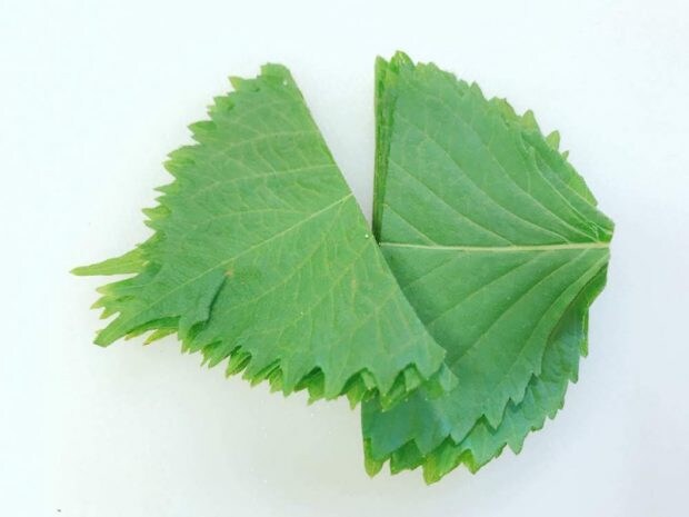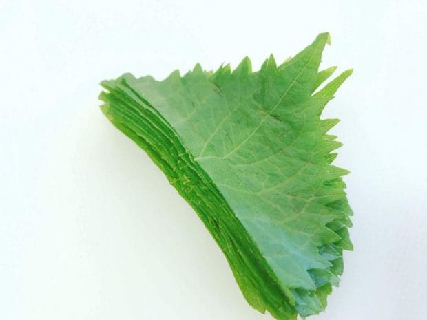 大葉を千切りにする時は、さっと洗って水気を切った大葉をまず半分に切りましょう。そのまま使っても良いのですが、切ったほうが食べやすい長さになりますよ。