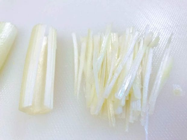 料理に合わせて太さを調整してみてくださいね。豆腐の上に乗せたり、サラダにしたり。繊維に沿って切るので、シャキシャキとした歯ごたえが楽しめます。