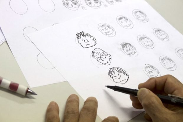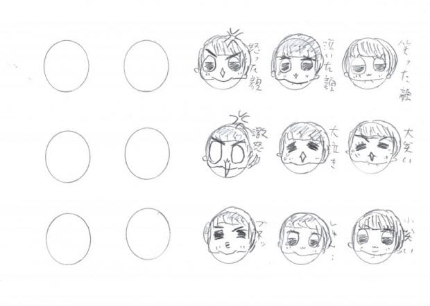 そう言って、さまざまな顔をスラスラ描いていきます。先生が描く生き生きとした表情のキャラ達が今にも紙から飛び出してきそう。すごい。