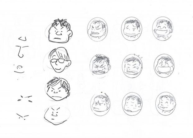吉本先生「目の形のバリエーションは、あまり変えられないじゃない? でも、輪郭はいろいろある。ゴツイやつって髪がモサモサしているし、面長の奴はだいたい眼鏡かけてるし。あとは鼻の位置とか変えれば充分」