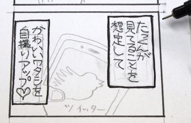 基本の描き方を教わったところで、いよいよネタ作り。今回は「恋愛」をテーマに作りたいと考えています。はたしてどんなネタが他人に刺さるんだろう……。