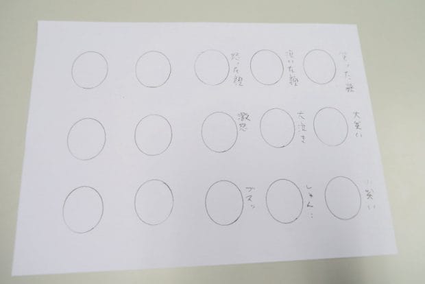 吉本先生「この円の中心に泣き顔や笑った顔、怒った顔のキャラクターを描いてみて」
