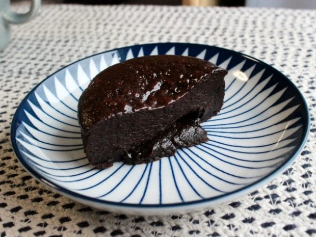 ガトーショコラは電子レンジで30秒温めてみるとまた違ったおいしさが! 中央の生チョコレートがとろりと溶けだし、表面もつやつやに。濃厚なチョコレートがよりガツンとくる、ホットスイーツになりました。これからの季節にぴったりです。