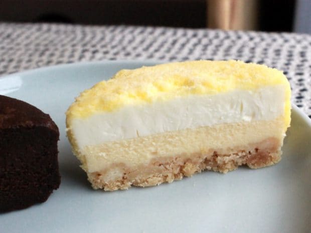 上層がレアチーズ、下層がベイクドチーズです。底はタルト生地になっています。