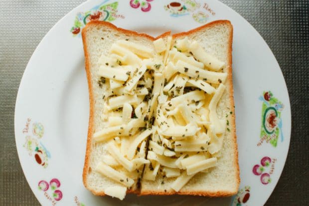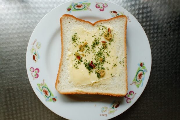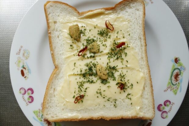 にんにくの風味が後を引き、もう一枚ガーリックトーストを食べたくなったので、今度はアレンジトーストを作ってみます。