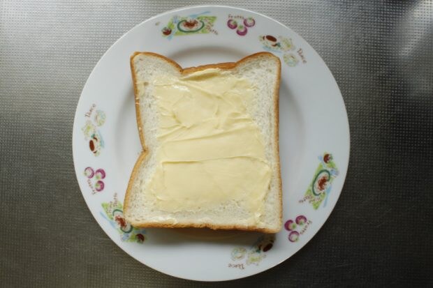 ①食パンにマーガリンを塗ります。