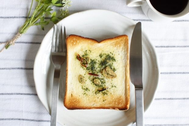 オーブンを開けると香ばしい香りが部屋中に漂います。食べてみると、にんにくの風味が口いっぱいに広がって、まさに至福の時。見た目も味も、カフェのメニューのようなでき栄えです。バゲットで作ってみてもいいですね。ワインなどにも合いそう!
