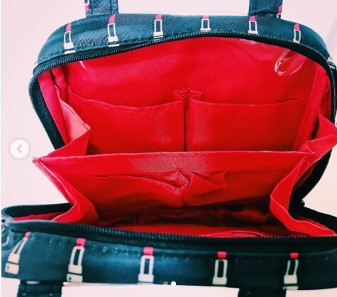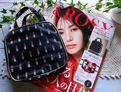 雑誌「&ROSY」の付録は、ブランド「アルティザン・アンド・アーティスト」のスクエアポーチです。限定のリップ柄ポーチは、メイクアイテムをたっぷり収納できる大容量。全部で11個の収納スペースがあり、ブラシもミニボトルも立てて収納できるんです。