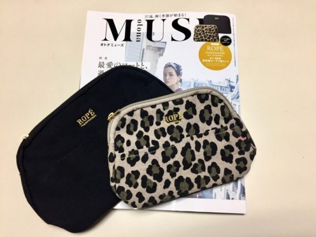雑誌「otona MUSE」の付録は、人気スタイリスト金子綾さんが監修した、ブランド「ROPE mademoiselle」のポーチ2個セットです。筆者も早速手に入れてみました! シックな黒とレオパード柄の異なるデザインの大小のポーチは、付録とは思えないほどしっかりとした生地感。中身を入れなくても、ポーチが自立します。