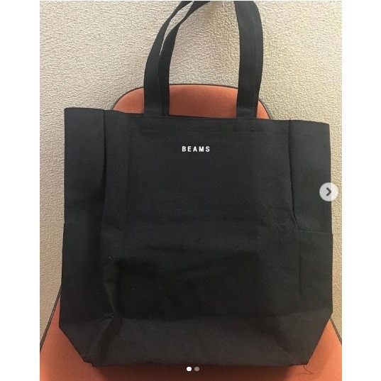 普段使いに便利な機能を備えたトートバッグのサイズは、タテ38×ヨコ32×マチ13cm。通勤、買い物、ジム……いろんなシーンで使えそうです。バッグの背面には、BEAMSのロゴが入っています。価格は、860円(税込)。