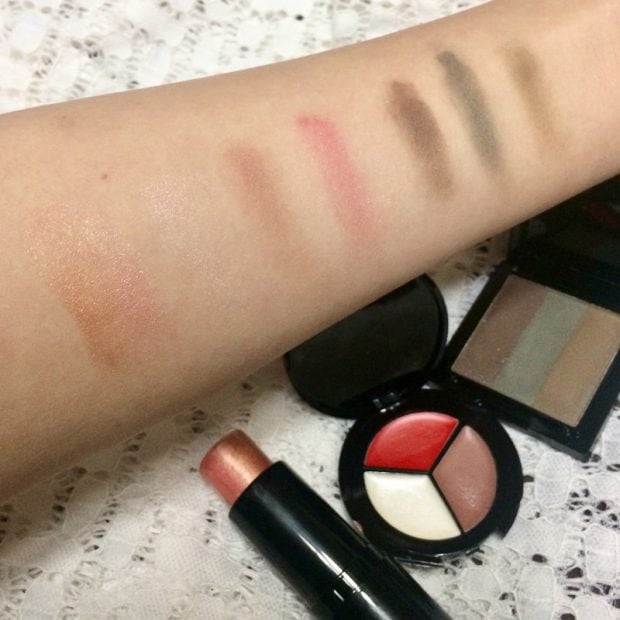アイ、チーク、リップ、ハイライト、ローライトと幅広く使える3色マルチカラー(写真左上)は、肌馴染みも◎!