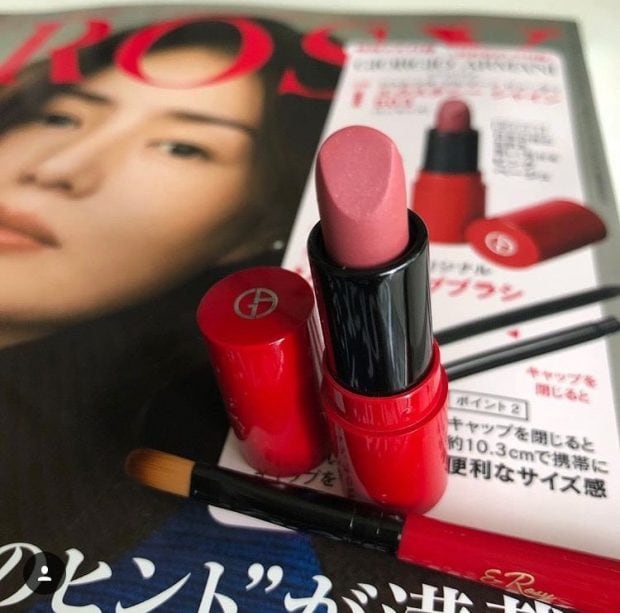 雑誌「&ROSY」は、なんと世界で初めてとなる「ジョルジオ アルマーニ ビューティ」の付録。アルマーニの「エクスタシー シャイン」503のミニサイズが付録なんです。