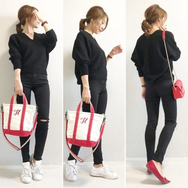 スニーカー&トートバッグで大人カジュアルに、かっちりバッグやパンプスに合わせてレディな着こなしにと、小物を変えるだけで印象がガラッと変わるコーデを楽しめますよ。