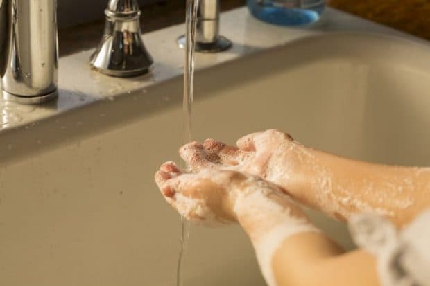 「手指に付いたノロウイルスを減らすのに最も有効なのは手洗いです。帰宅時、調理をする前、食事前、トイレの後などに流水と石鹸でしっかり手洗いしてください。石鹸そのものにはノロウイルスを死滅させる効果はなく、手洗いだけでは完全にノロウイルスを除去することはできないのですが、汚れを落とすことで手指からノロウイルスがはがれやすくなります。