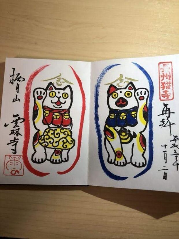 ネコ寺とも呼ばれている雲林寺の御朱印は、やっぱりネコの絵柄! 御朱印だけでなく、おみくじやお守り、絵馬もネコだそうです。