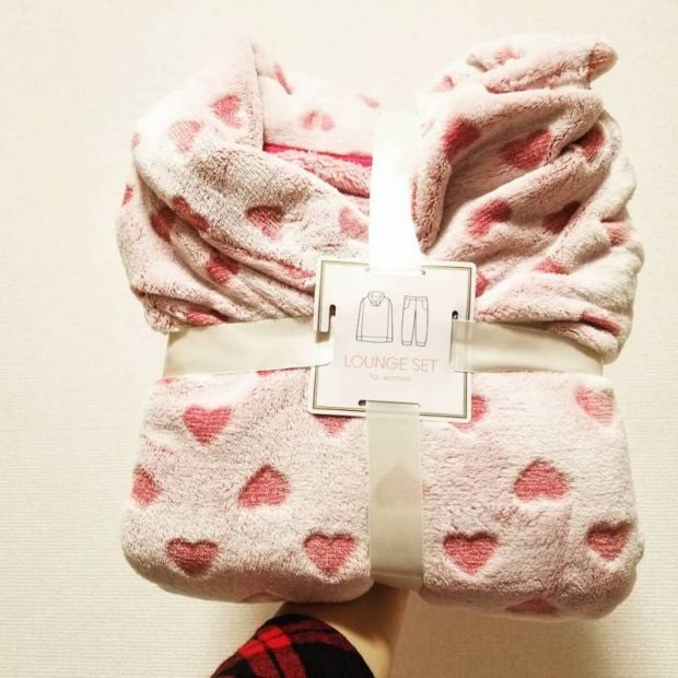 ハート柄のラブリーなデザインも登場しています。部屋着はとにかく可愛いデザインが好きという方にぴったりなデザイン。リボンがかかっているような包装なので、ギフトにもオススメですよ。
