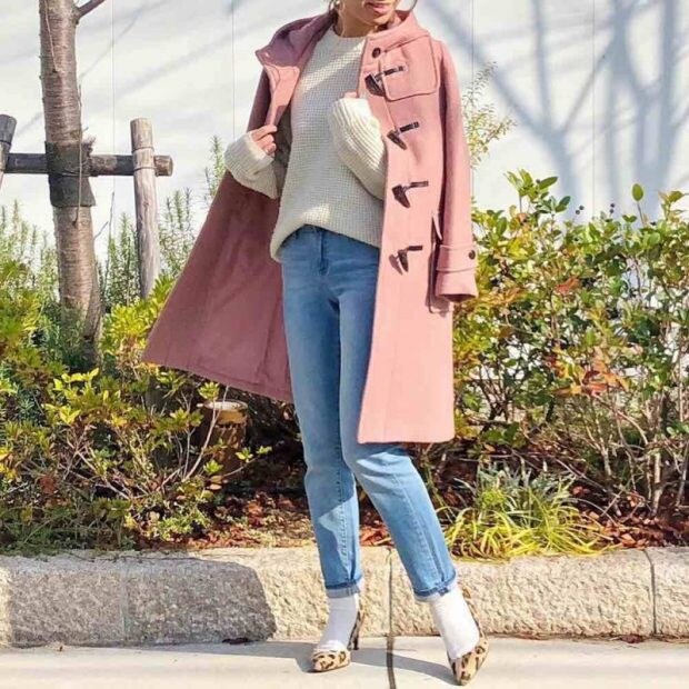 今季はカラーコートがトレンド! GUのダッフルコートもカラーバリエーション豊富で悩みましたが『GU大人レディ部』のイメージとして、落ち着いた優しいピンクのダッフルコートをチョイスしました。