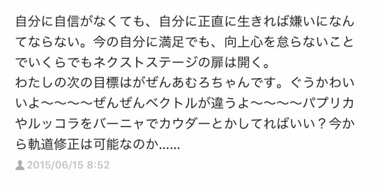 それでもずっとアムロちゃんへの憧れはあって、2015年に「アムロちゃんになりたい」というポエムをSNSに書いたところ、知り合いに笑われてショックを受け、そこからはもう無謀なことは言わないようにしようと心を閉ざしていたのです。