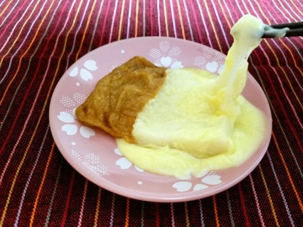 とろーりチーズが伸びる伸びる! おもちのもっちり感もしっかりあるので、もちもち食感も味わえます。甘いいなりあげとチーズの味がベストマッチ。