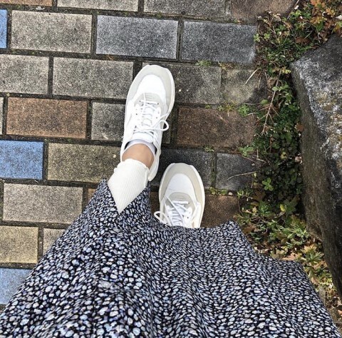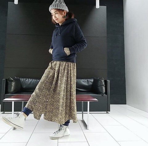 上からパーカーを重ねれば、スカート風に着回せます。昨年から続くスポーツMIXのコーデが、簡単に演出できますよ。
