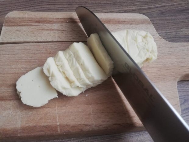 4.冷蔵庫から取り出した生地を5mm程度の厚さに切っていきます。
