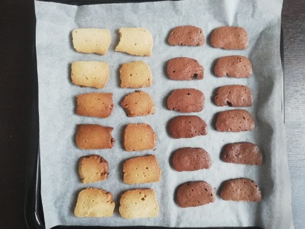 筆者は2種類のクッキーを作りたかったので、チョコレートを2種類にして薄力粉を半分ずつ(30g)にして作りました。1種類の場合は、チョコレート150gに薄力粉60gで作ります。