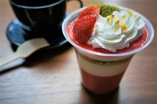 こばやし:いちごのムースかな。緑色のところは、抹茶味。
