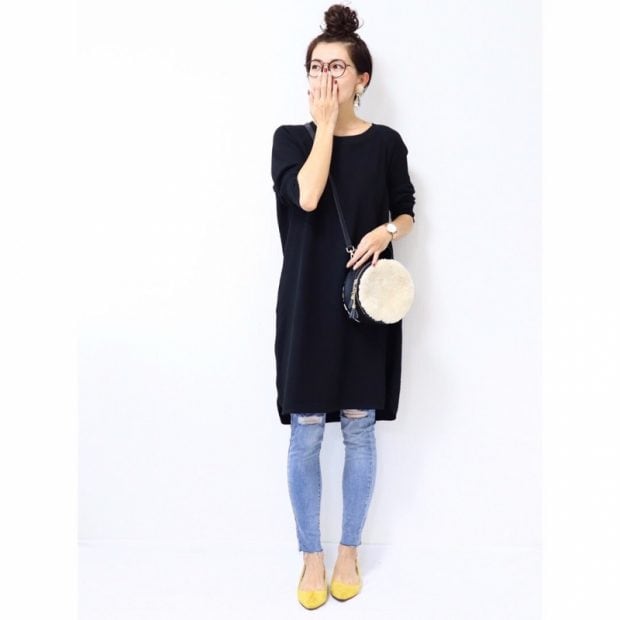 ワッフルクルーネックワンピースは、一枚でコーデが完成するアイテム。一枚で着こなすのはもちろんのこと、デニムと合わせると着こなしの幅が広がります。