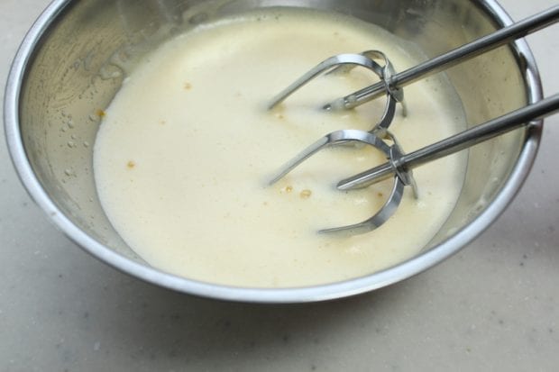 5)ハンドミキサーか泡だて器で、4がクリーム状になるまで泡立てます。