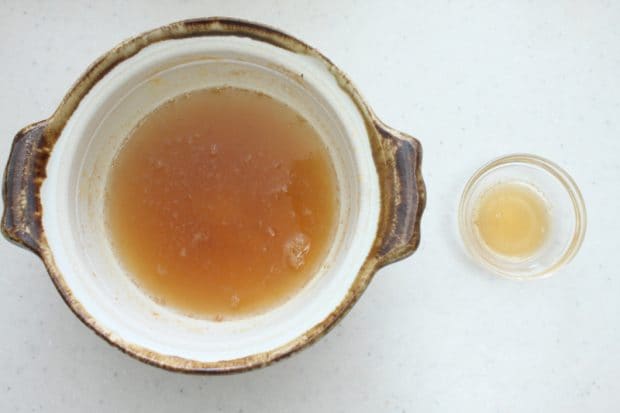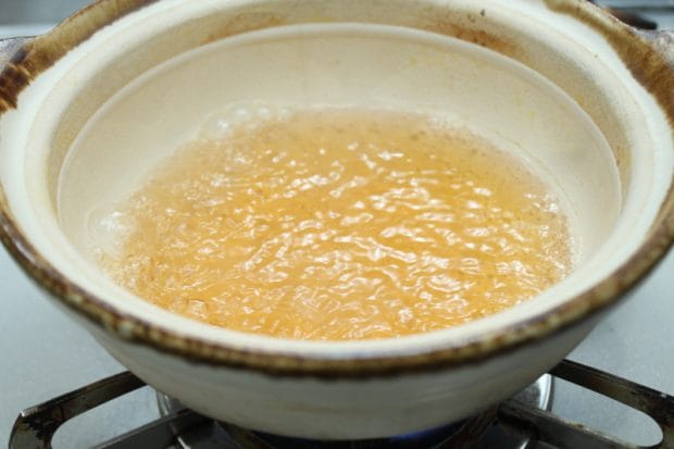 1)鍋に水と顆粒だし・塩・しょうゆを入れ、だし汁を作ります。