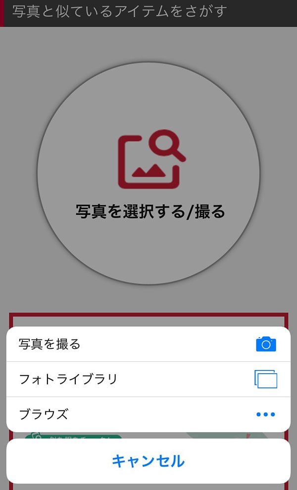 (2)真ん中にある「写真を選択する/撮る」のボタンをタップ