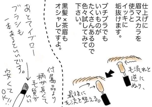 私は今黒髪なのですが、KATEのブラウン系の眉マスカラ(BR−1)を使っています。 仕事用にもプライベート用にも使えます!