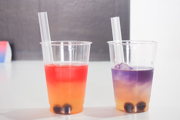 まずは、ウェルカムドリンクでお出迎え。ゆず100%・マンゴーハイビスカス&ローズヒップ・レモンハイビスカス&ローズヒップ・ゆず&バタフライピーの4種類で、ウェルカムドリンクにもタピオカが入っています(2粒でしたが…)。