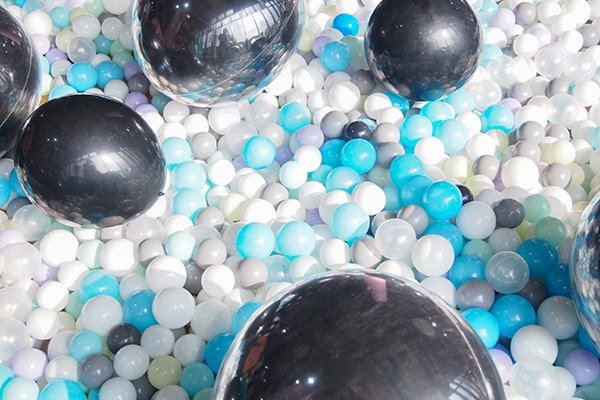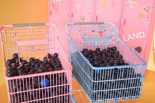 とはいえ、子ども連れにはおすすめ。未就学児~小学生までは無料で入場でき、タピオカ(ボール)プールやブランコ、スーパーボールすくいなど、子どもが喜びそうなアトラクション(?)もいくつかありました。天井にも、タピオカを模したバルーンが浮かんでいますよ。