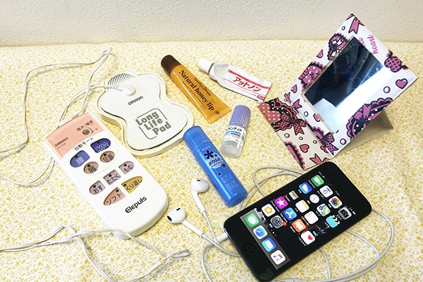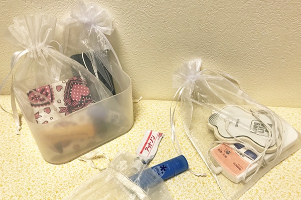 目薬と鏡など、セットで使うものをまとめておけるのもメリット。コードつきの機器だって、大雑把にコードを巻いて袋にしまっておけばOK。