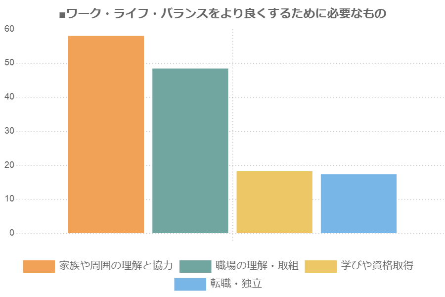 続いて、「ワーク・ライフ・バランスをより良くするために必要なもの」(複数回答)を見てみましょう。