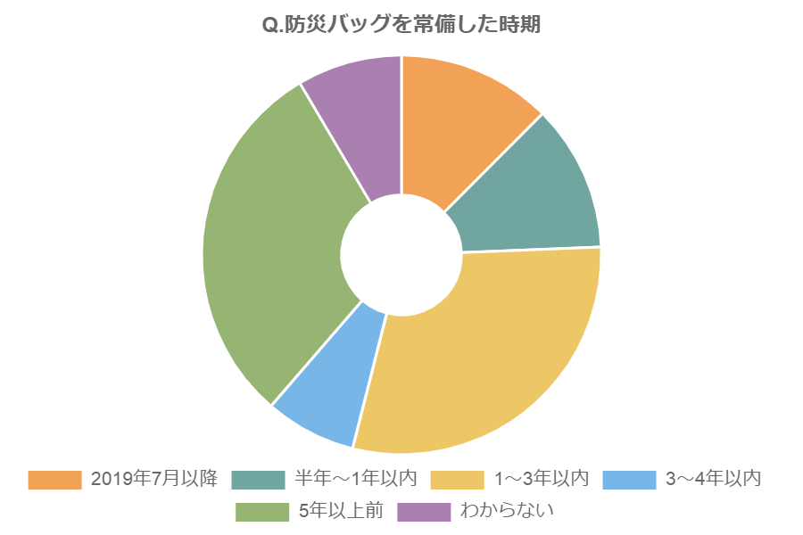 また、「常備している」と答えた2892人を対象に、常備した時期を聞いた結果も出ています。それによると、37.6%は、防災バッグを常備してから3年以上経過していることもわかりました。