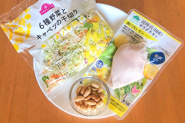 今回紹介するレシピは、サラダチキンやカット野菜などを使用するものだから火を使わないのはもちろんのこと、包丁やまな板すら不要のお手軽簡単レシピです。