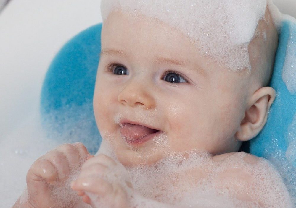 顔がきれいになったら、頭をお湯で濡らします。赤ちゃんの皮膚は大人の半分ほどの薄さです。界面活性剤の濃度が大人用よりも薄めの「赤ちゃん用ボディソープ」や「ベビー石けん」を使いましょう。